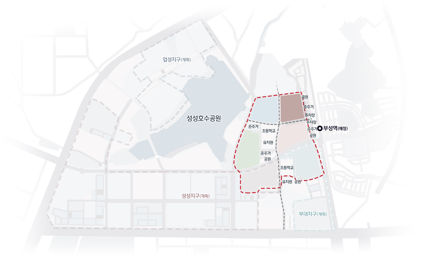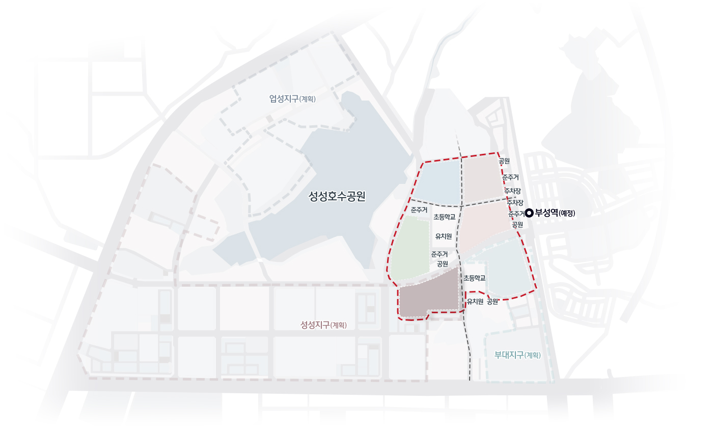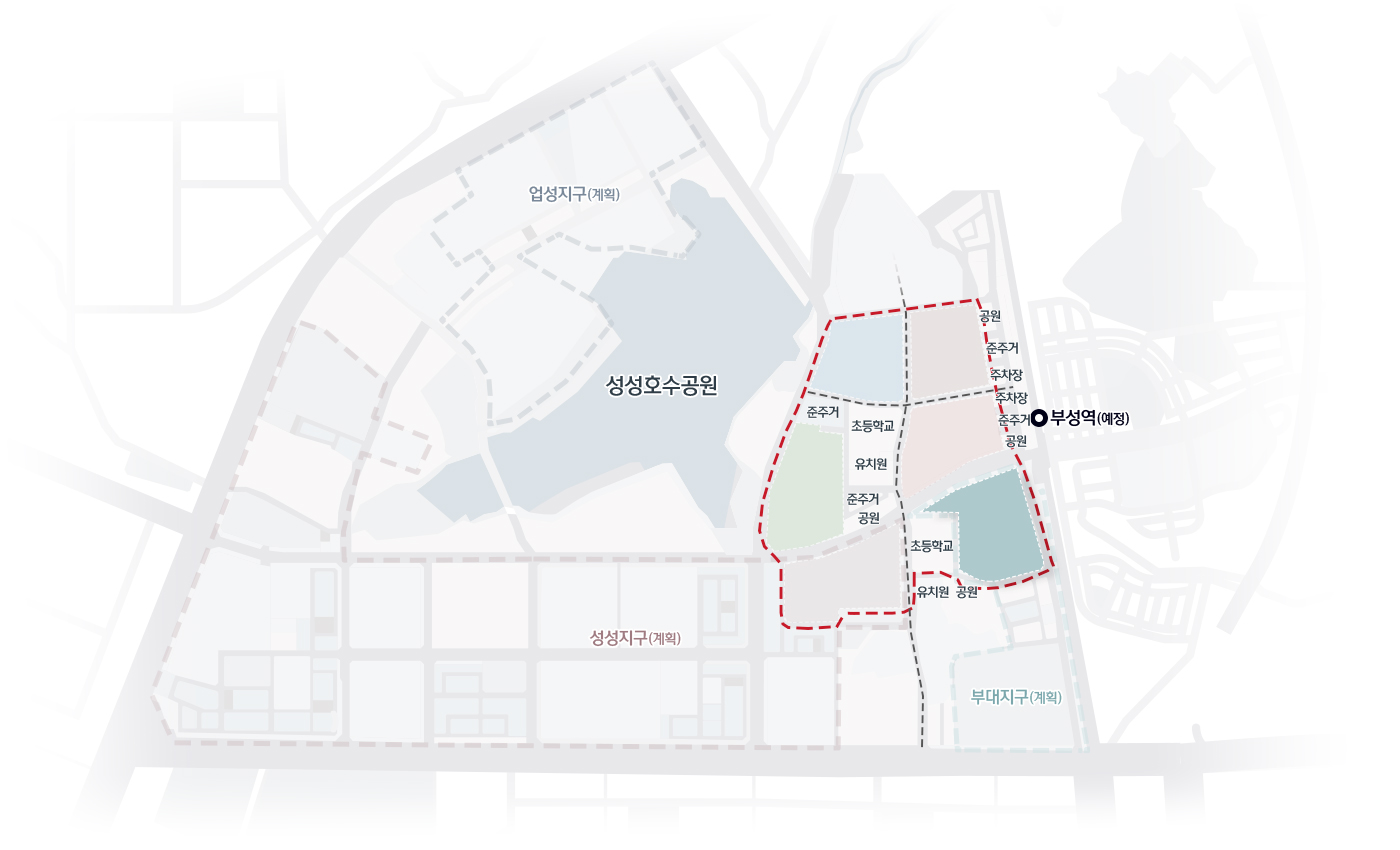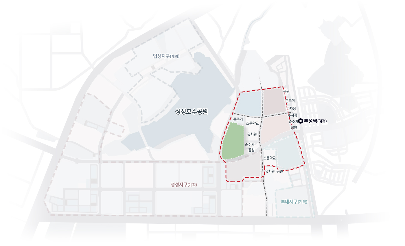 상기 지역도에 표기된 부성역(예정)의 위치는 개략적인 것으로,