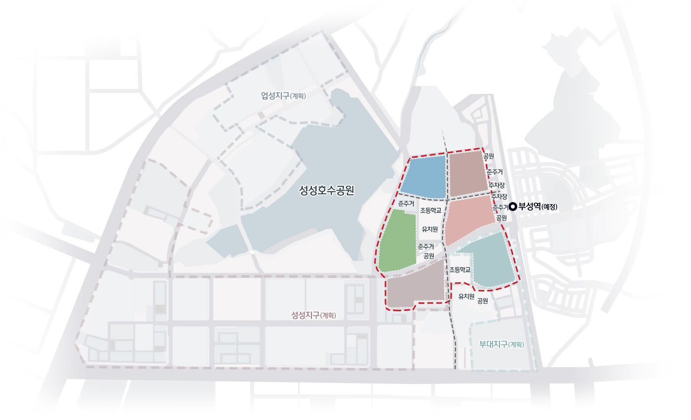 부성지구를 둘러싼 가로, 기반시설, 교통,