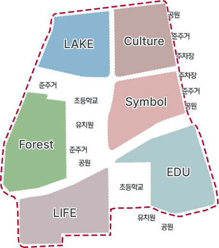 도시적 랜드마크 이미지 구축을 기반으로,지구별 핵심 키워드 도출을 통한 6개 디자인을 차별화 합니다.